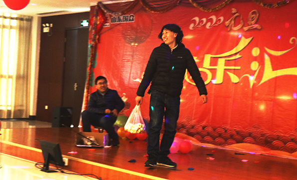 歡樂匯以“開球見喜”為主線,員工上場(chǎng)開球以隨機(jī)的形式抽取,開小球表演簡(jiǎn)單的小節(jié)目,無需準(zhǔn)備,簡(jiǎn)單新穎,比如,員工劉壽山開球開出——走模特步,讓他頗為難為情,跟著女主持一起模仿模特步,引得員工笑顏頓開;開大球,員工表演各種節(jié)目。匯場(chǎng)上,新年的歡樂氛圍火爆,員工舒心快樂的表演節(jié)目,王旭東、徐可的《沙漠駱駝》,以明快的節(jié)奏激活了歡悅的氛圍;杜杰的幽默表演——《中國功夫》,以粗狂的武術(shù),給大家?guī)砹苏鸷常痪狭值囊磺?dú)奏《毛主席話兒記心上》,給大家?guī)Щ氐矫珷敔敃r(shí)代的回憶中去;李寧演唱的《在哪遙遠(yuǎn)的地方》,可謂聲情并茂,唱出了遙遠(yuǎn)地方姑娘的美麗與善良;陳爍帶來的魔術(shù)表演,新穎活躍,調(diào)節(jié)了匯場(chǎng)的氛圍,給大家新奇的感覺,也展現(xiàn)了陳爍機(jī)智和風(fēng)趣的個(gè)性;幽默滑稽的小品《如此問價(jià)》,給大家?guī)砹藲g悅,也將元旦佳節(jié)的喜慶氛圍推上了新的高潮;員工顏彬的一曲《家住臨沂》,道出了沂蒙人民熱愛家鄉(xiāng)的昂揚(yáng)情結(jié);孟祥松、盧元福等員工的大合唱《我的未來不是夢(mèng)》,唱出了員工的心聲,展露出國眾員工熱愛生活,追求美好前程的精神面貌;趙桂基、高珩超表演的相聲《求職趣事》讓匯場(chǎng)的氛圍更加火爆。